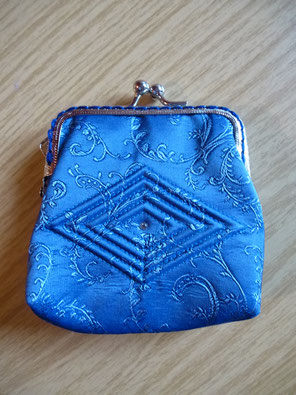 Geldbörse oder kleine Umhängetasche in der Miedertechnik hergestellt.